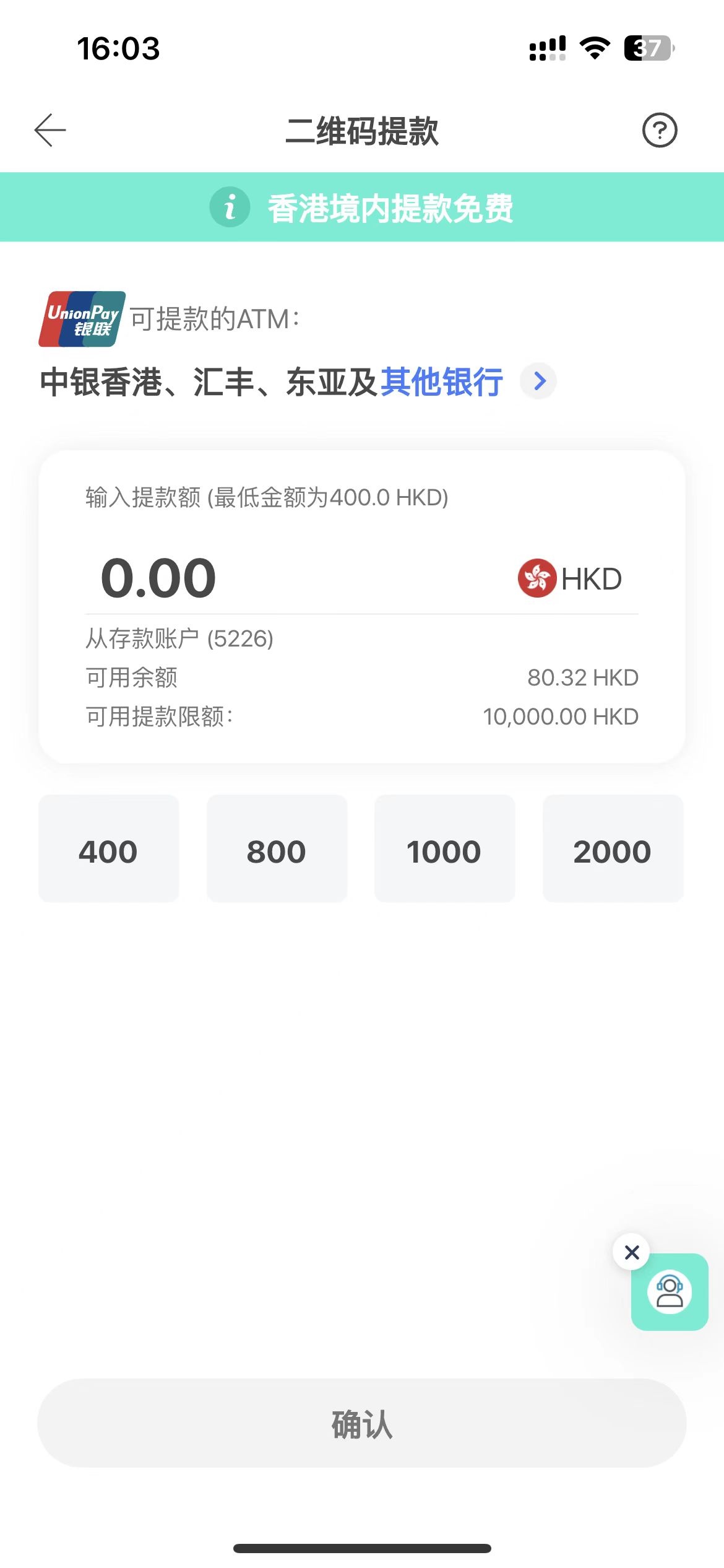 可以在香港多个大行取现,且免手续费,提现方式是通过APP扫码,大多银行都支持APP扫码提款!